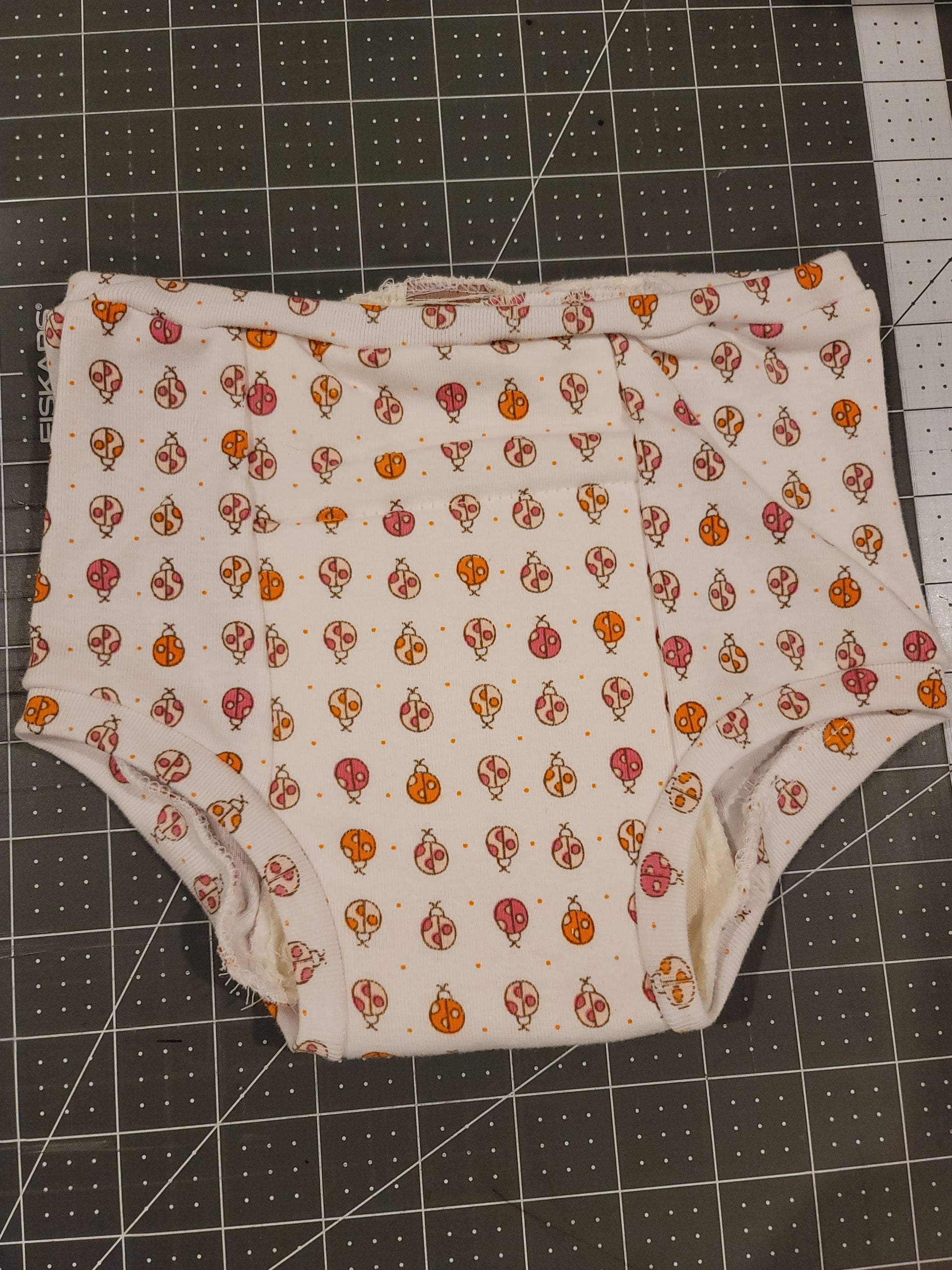 These cotton training pants have cotton knit outer and center panel lining. Absorbent layer of Zorb fabric in the seat. These are good for toddlers well into the toilet training process as they are of light absorbency. They're meant to catch those "oops, I almost didn't make it" type accidents. Please note that these run large. Made in the USA.